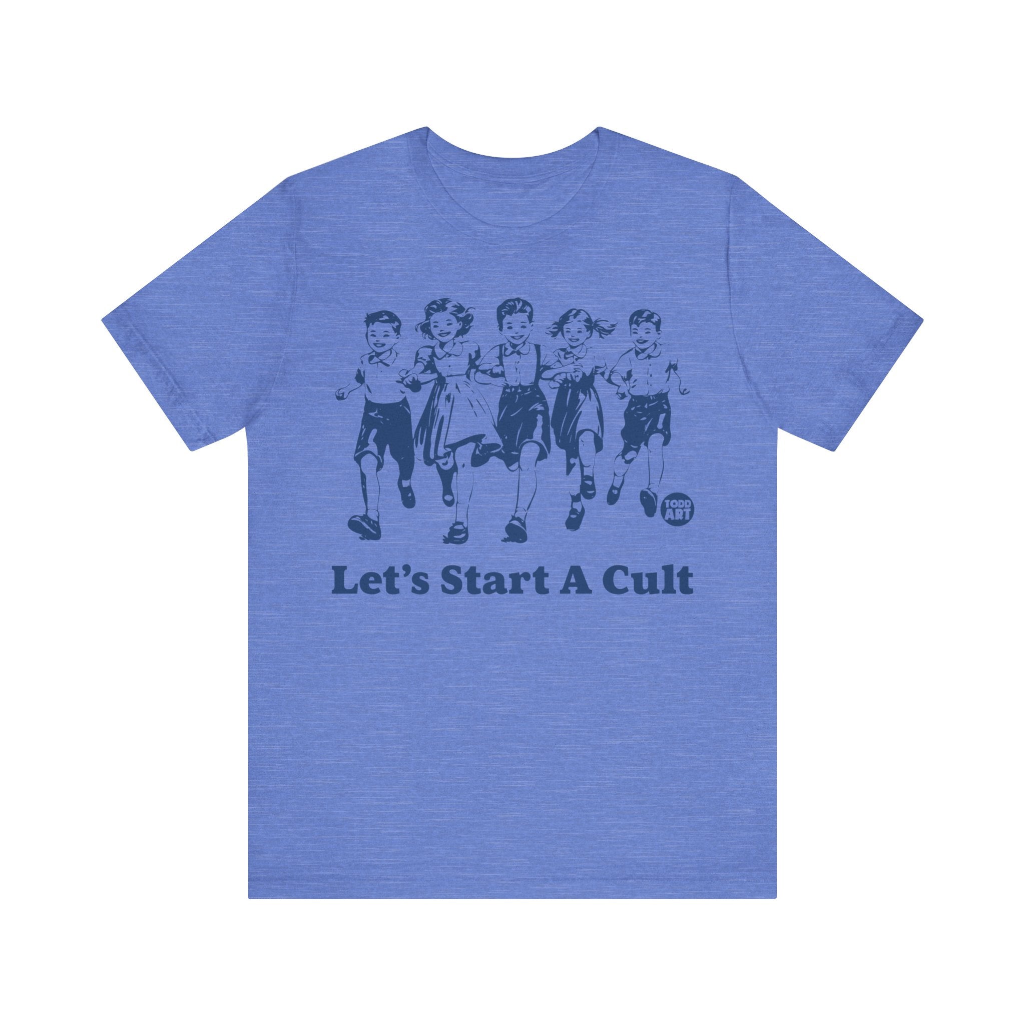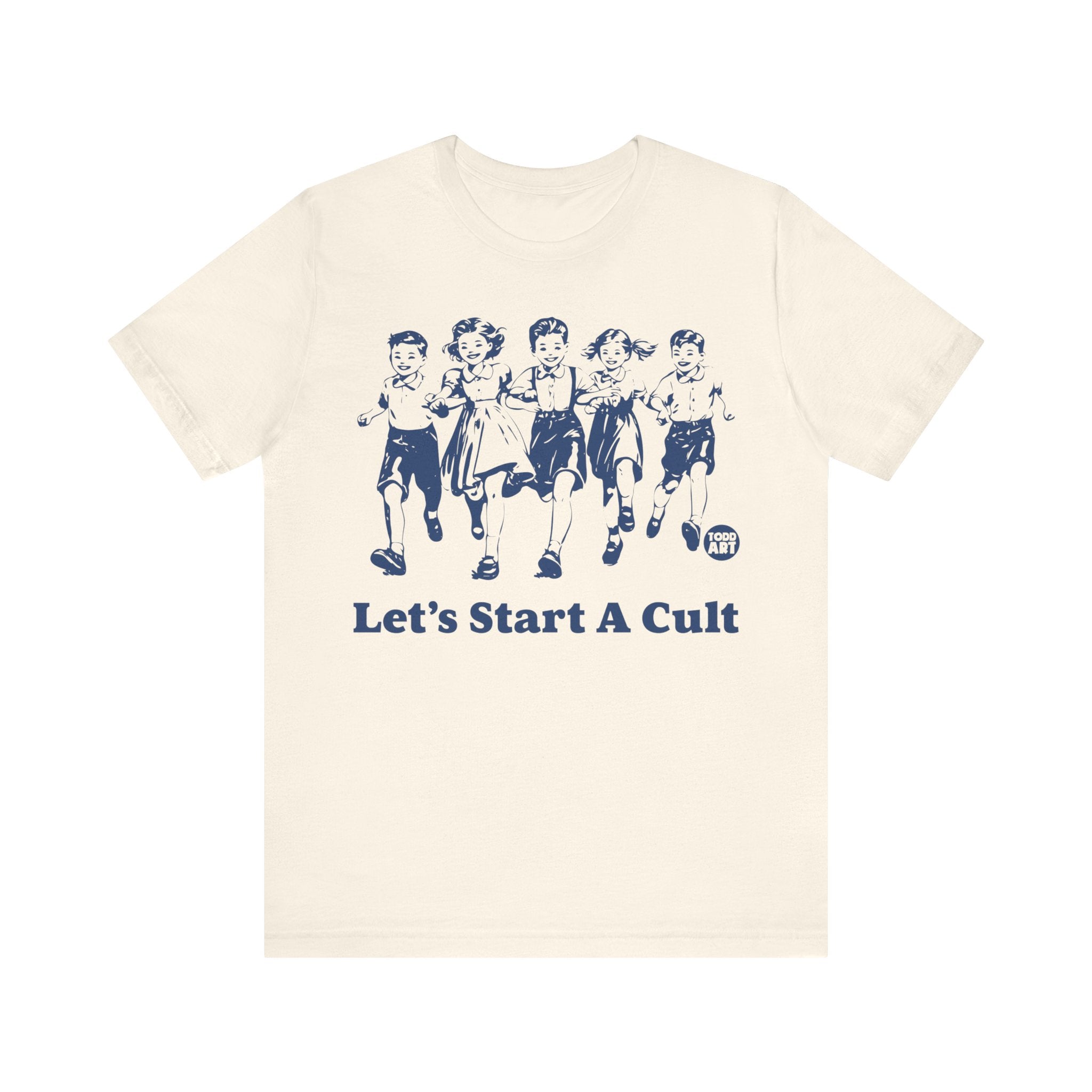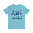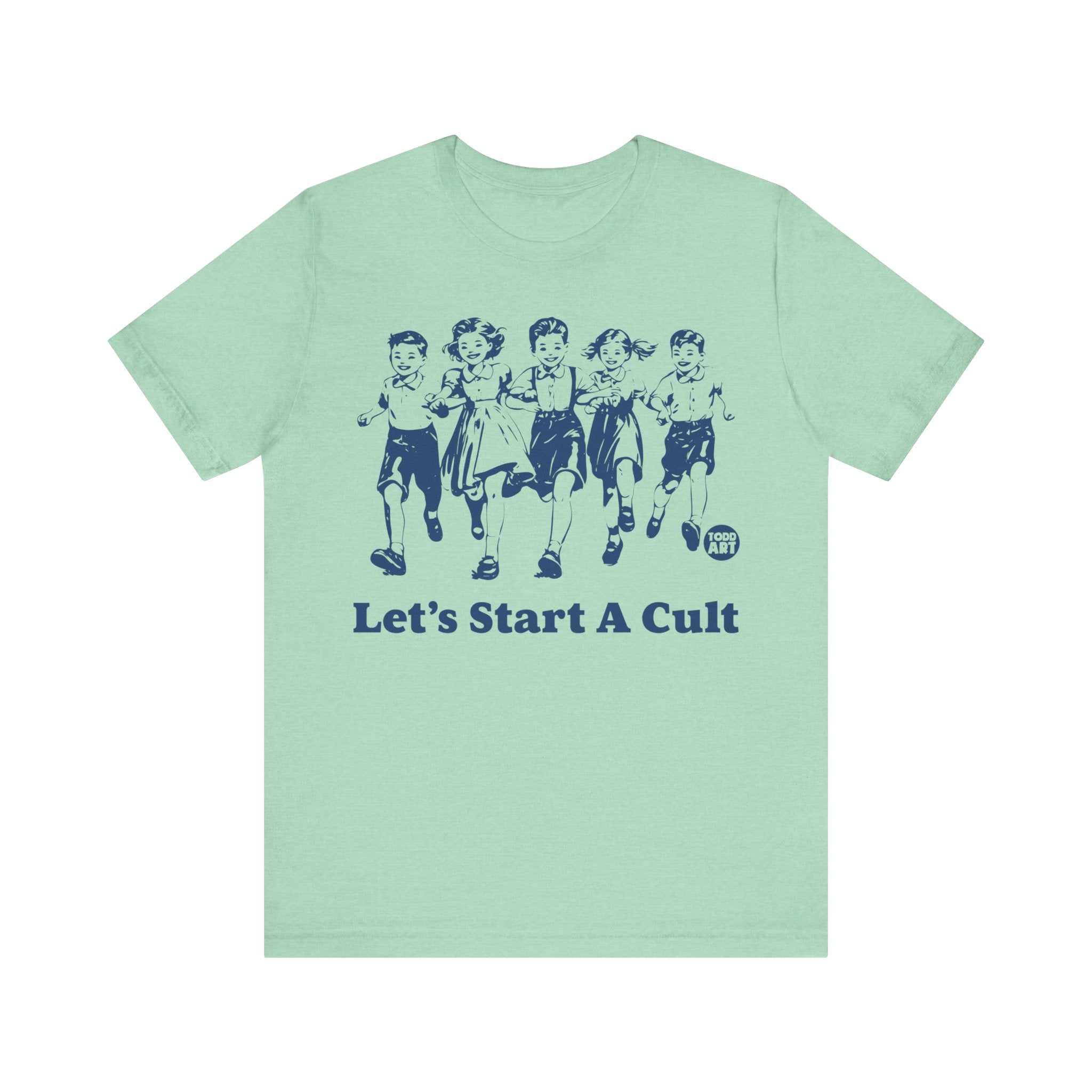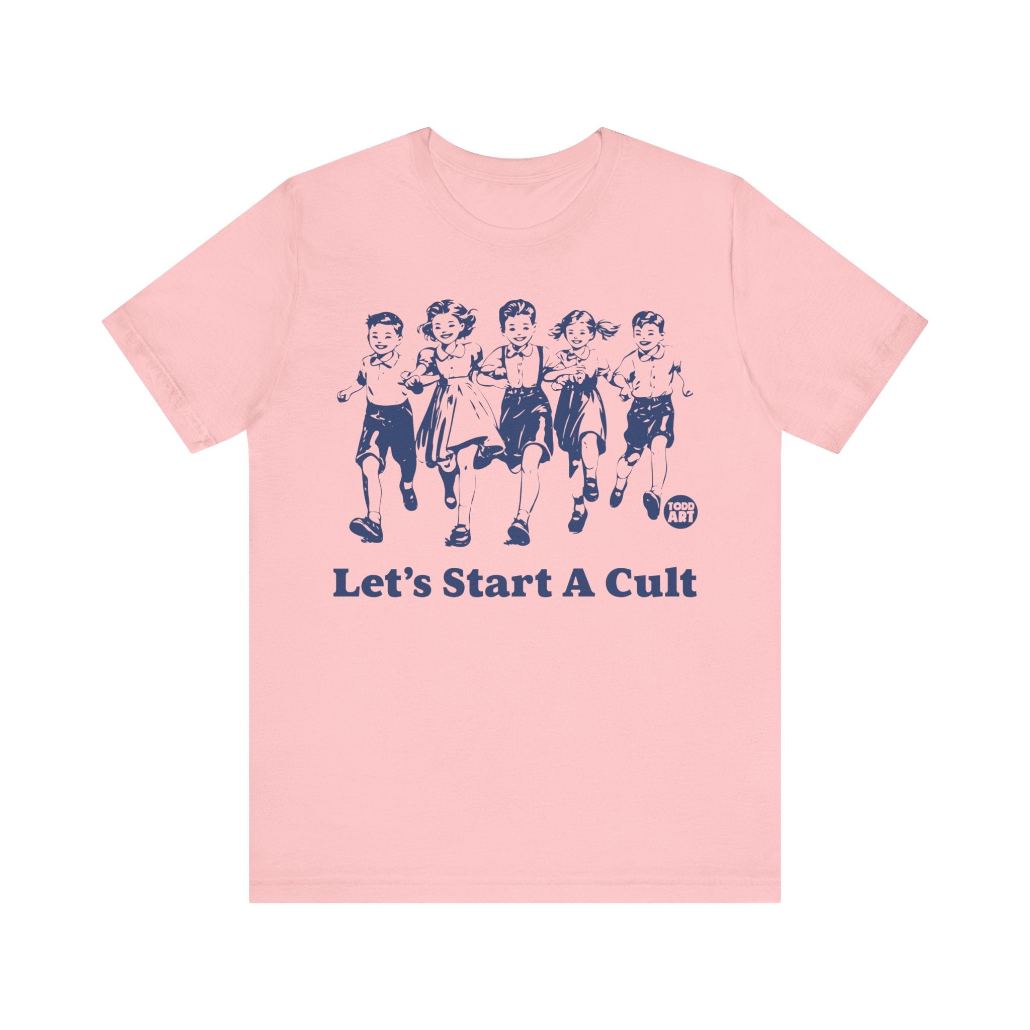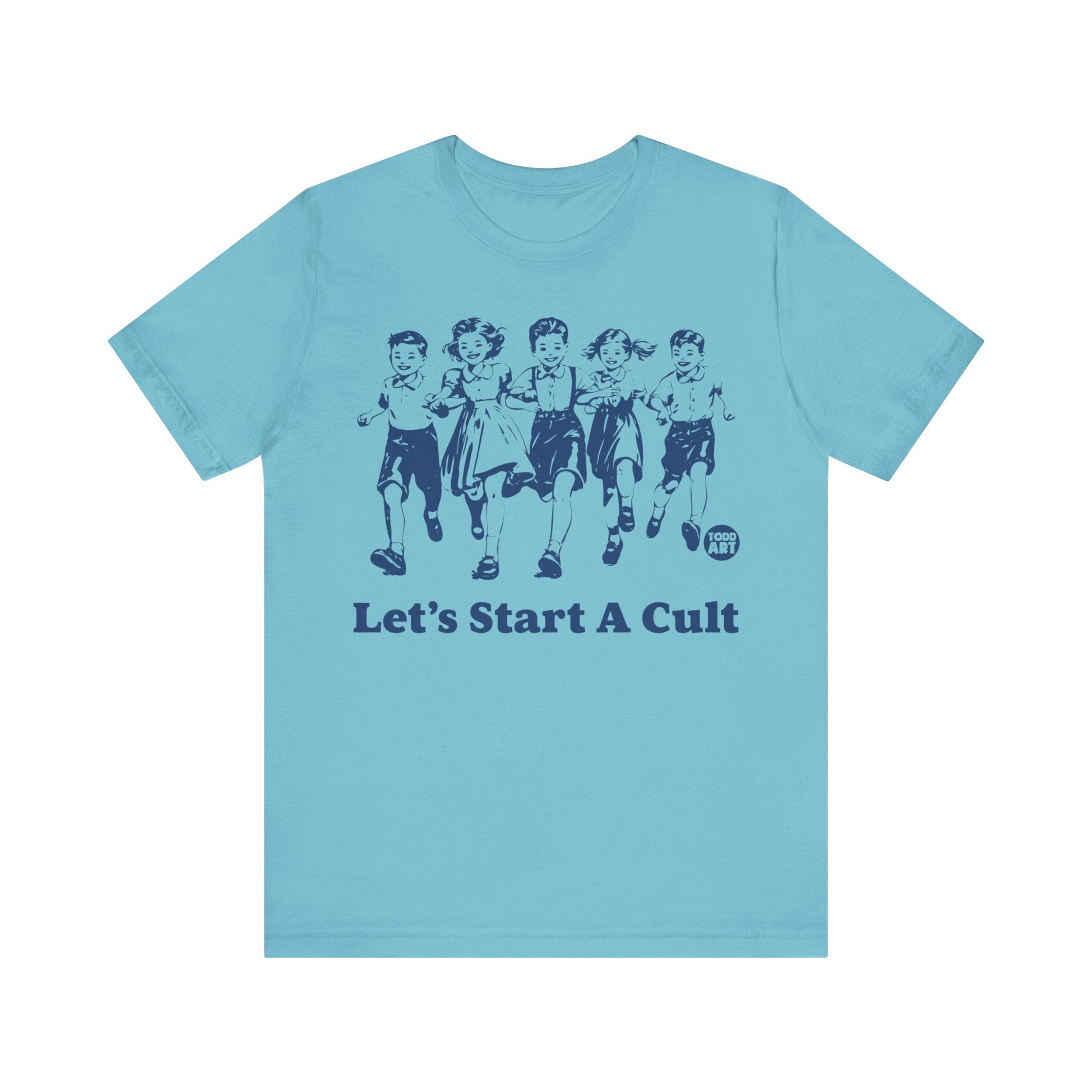 This super soft and comfy Bella and Canvas short sleeve tshirt featuring our Let's Start a Cult graphic will quickly become your favorite, go-to tee! Show off your humorous side with this funny graphic tee.