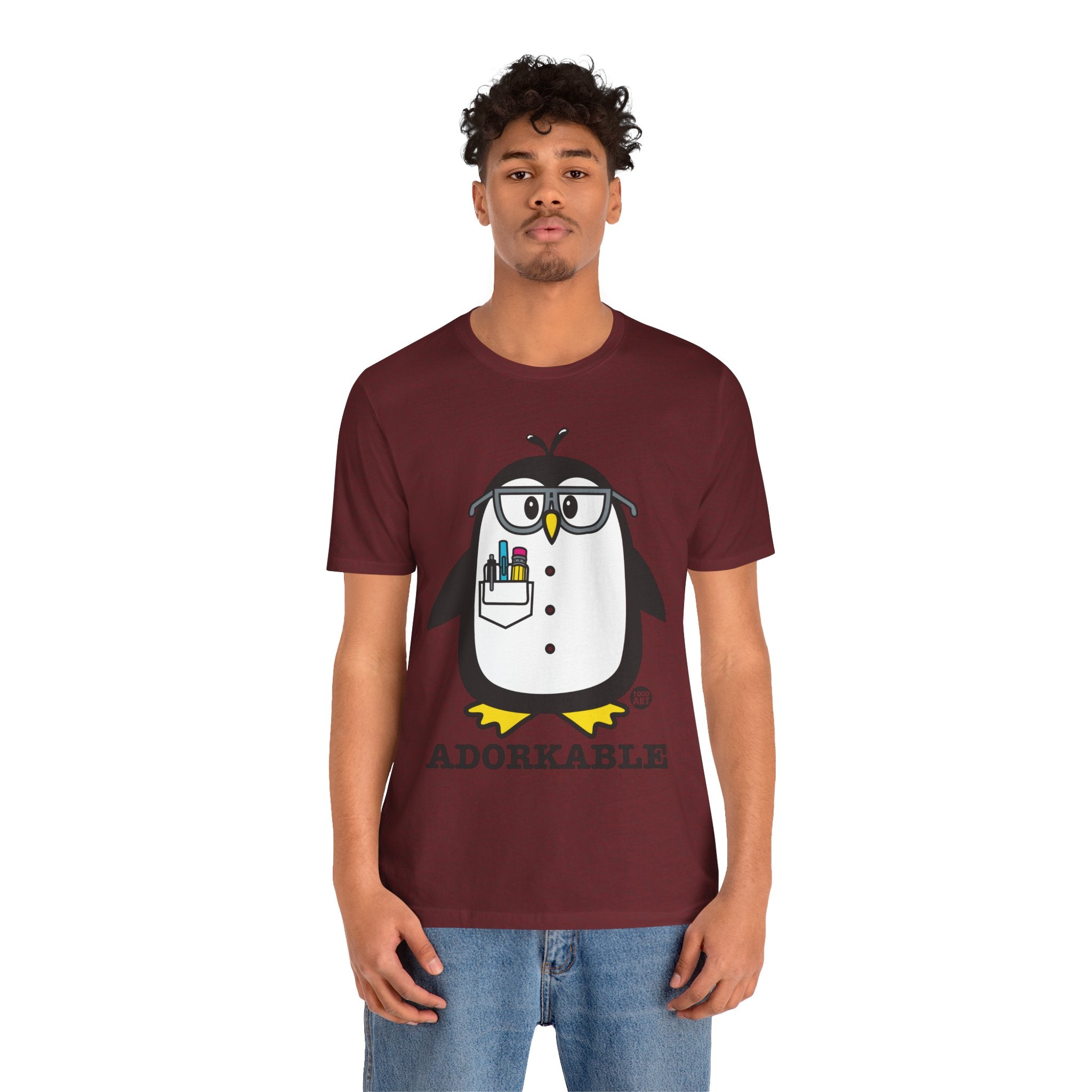 This adorkable cute geeky penguin tee is a must-have for anyone who loves quirky and fun designs. Made with lightweight fabric, it is perfect for layering and staying comfortable all day. The retail fit and classic crew neckline make it versatile for both casual and semi-formal settings. Ideal for geeks, penguin lovers, and anyone who enjoys adding a touch of whimsy to their wardrobe. Perfect for gifting on birthdays, holidays, and other special occasions.
